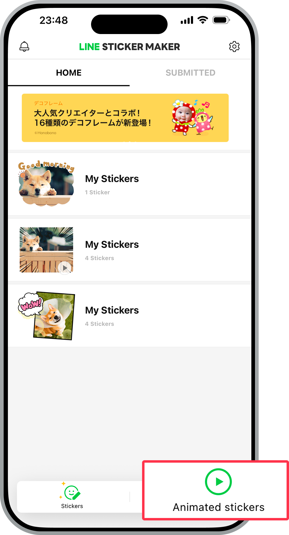 Tap Animated stickers to make an animated sticker from a video.