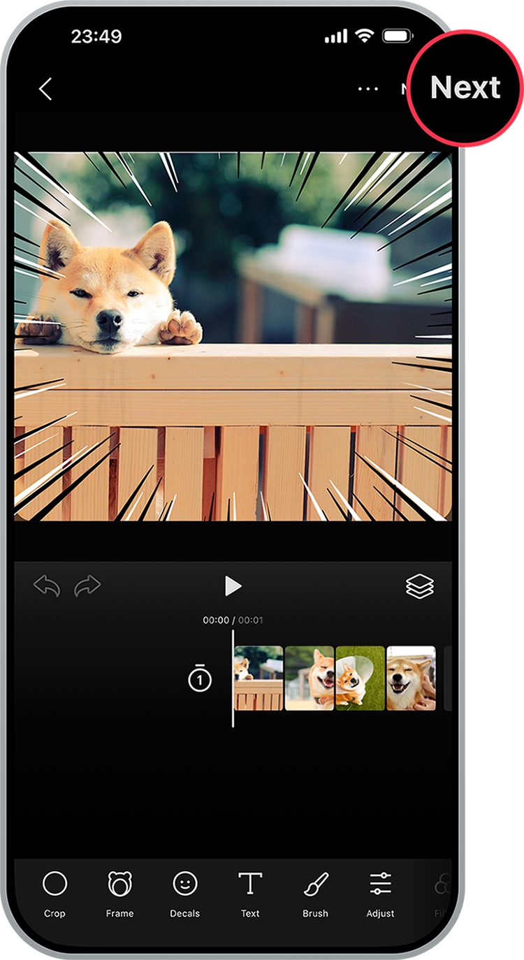 Tap Next at the top right of the editing screen and save your sticker